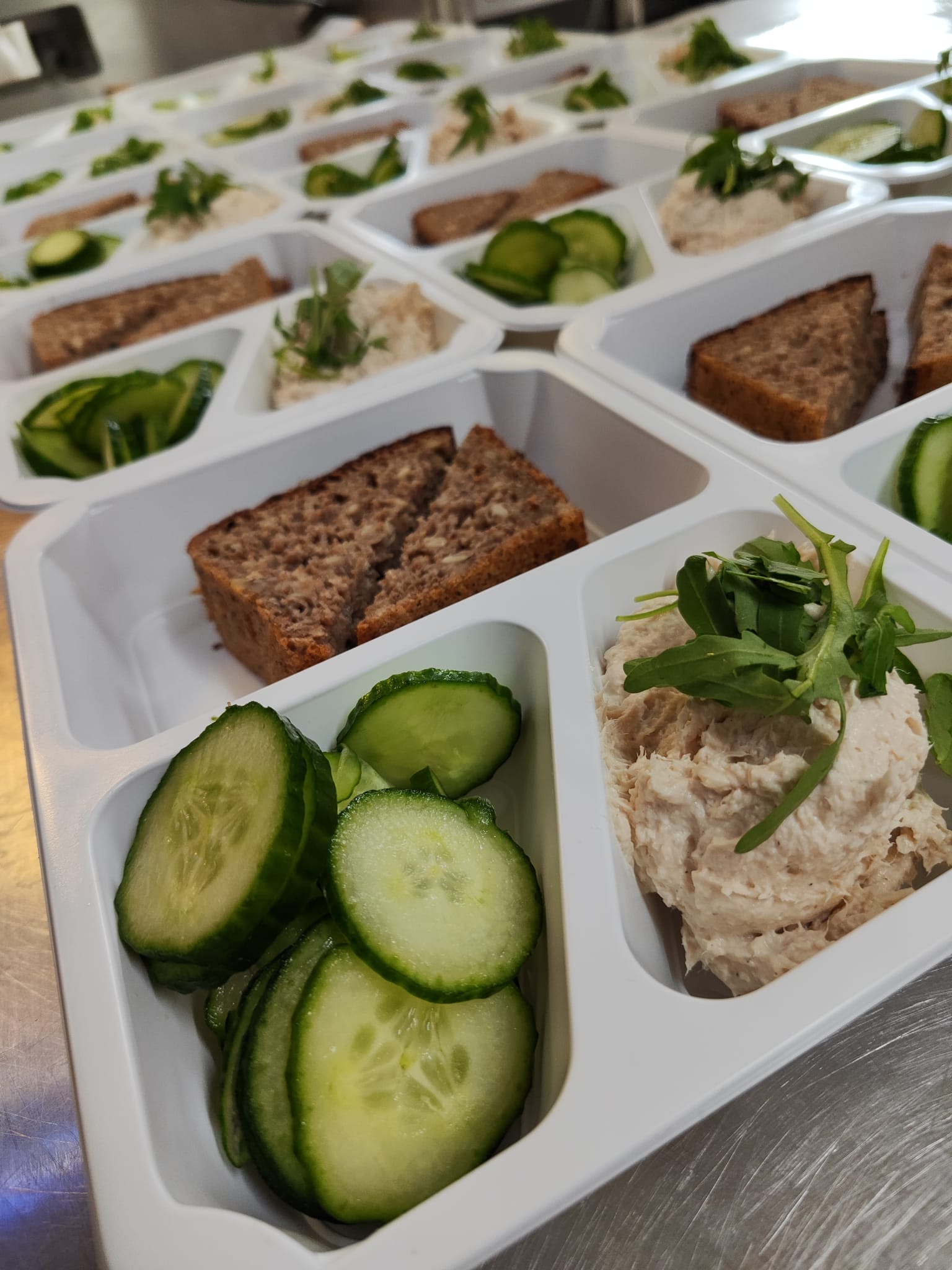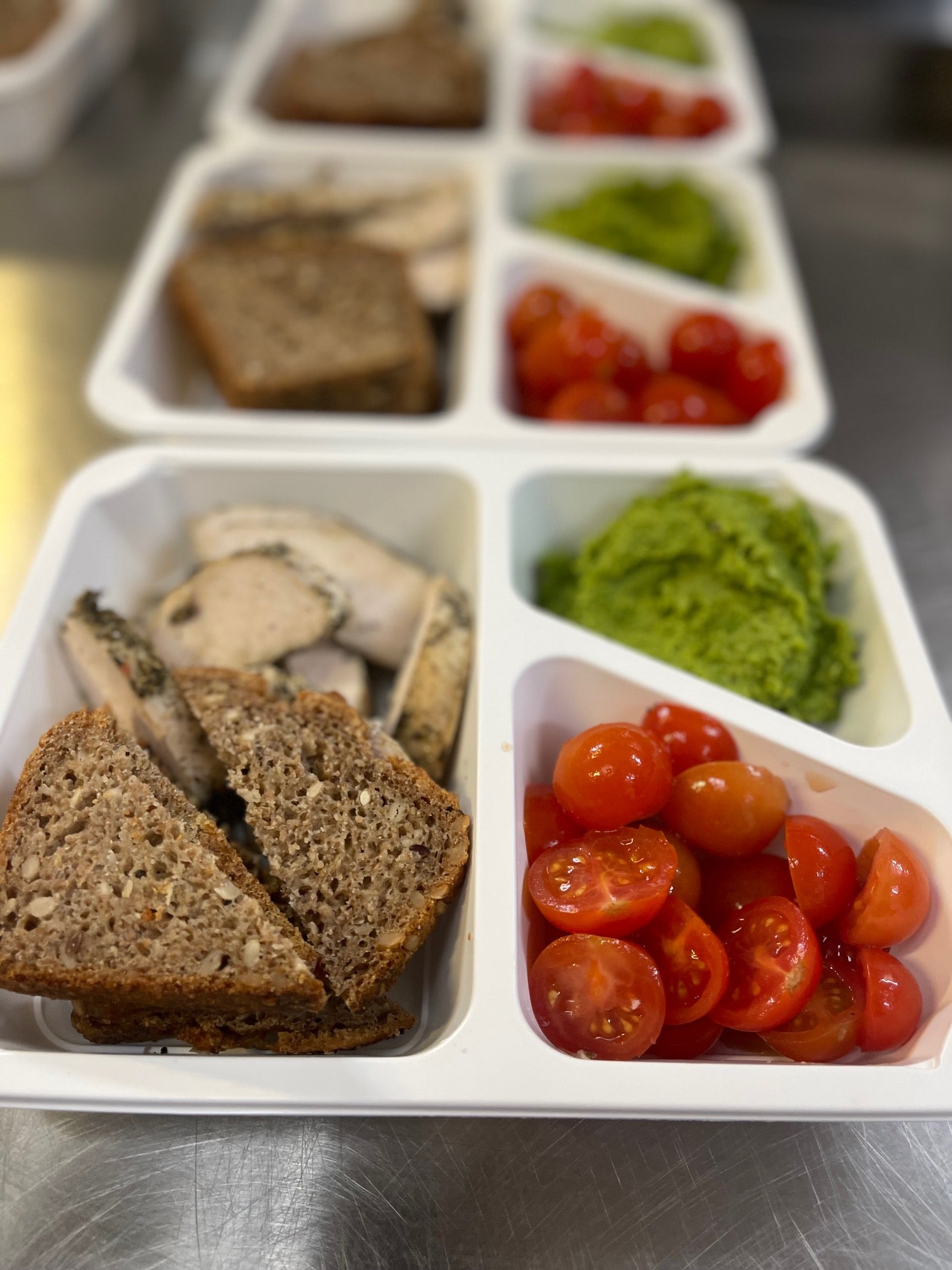 Każdy z posiłków ma wypisaną kaloryczność, skład oraz makro na naklejce.